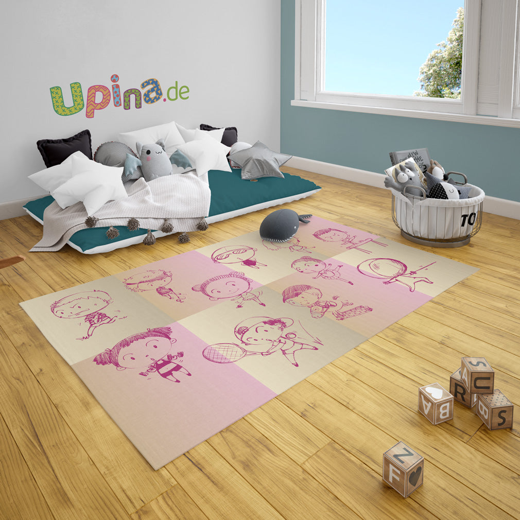 Sportlich und stilvoll: Der Spielteppich Sportarten rosa lädt Kinder zu aktiven Spielen ein. Ein weicher Teppich, ideal für kleine Sportler. Jetzt Kinderteppich kaufen und bestellen!